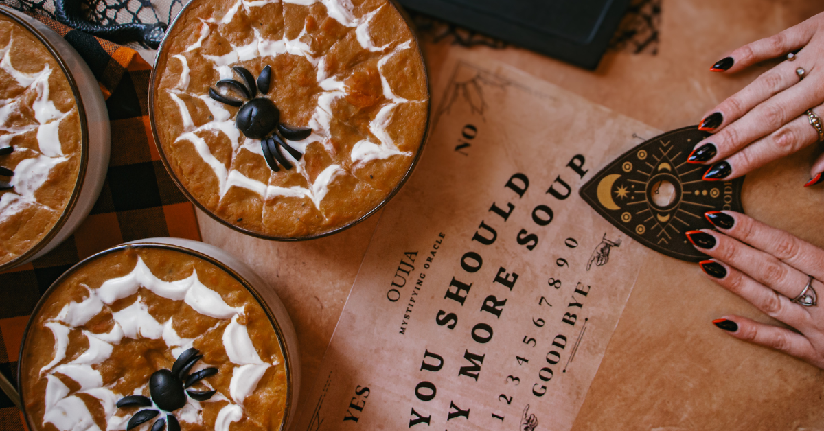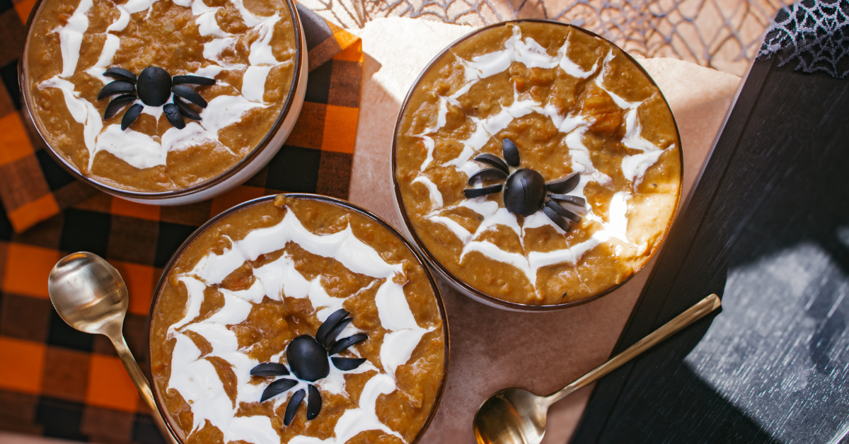 Serve it in black bowls, drizzle on your sour cream spiderweb, and garnish with a few edible “spiders.” It’s cozy, a little creepy, and absolutely delicious.