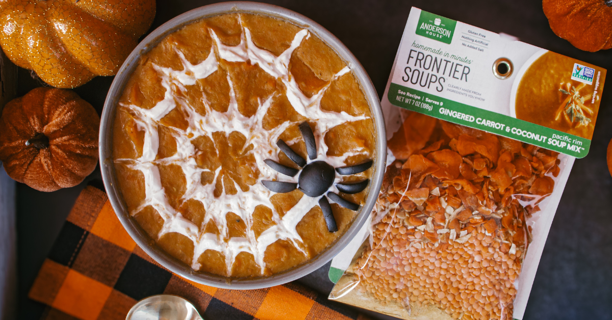 Between stringing up fake cobwebs and trying to keep my dog from stealing the candy bowl, I decided to make my first-ever batch of our Pacific Rim Gingered Carrot & Coconut Soup. I figured if I was going to photograph something Halloween-y, I might as well go all in — and this bright orange soup turned out to be the star of the show.