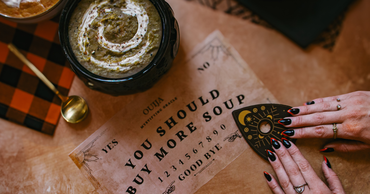 Serve this soup in small black cauldrons or rustic mugs with a swirl of sour cream “steam” and cracked pepper “dust.” Pair it with warm bread, candlelight, and maybe a broomstick parked nearby for effect.