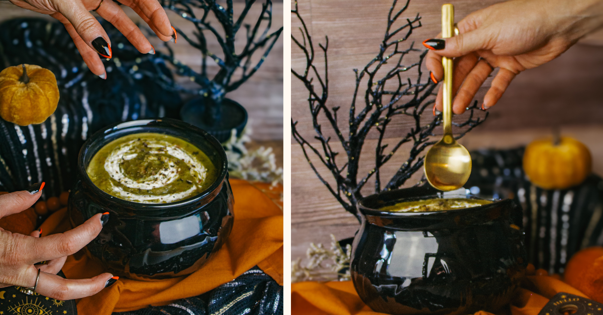 Hearty, smoky, and thick enough to double as a potion — this green soup is pure Halloween magic.