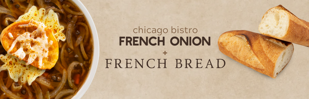 French onion soup wouldn’t be complete without a generous slice of toasted French bread topped with gooey melted cheese. The bread soaks up the rich broth while staying crisp on top—an iconic pairing that always hits the spot.