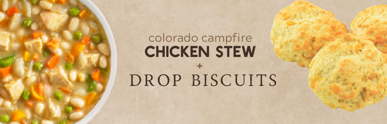 Our rustic chicken stew is loaded with tender chicken, potatoes, and vegetables. Pair it with buttery drop biscuits, which soak up the savory broth while adding just the right amount of crumbly texture. It’s the kind of duo that feels like home.