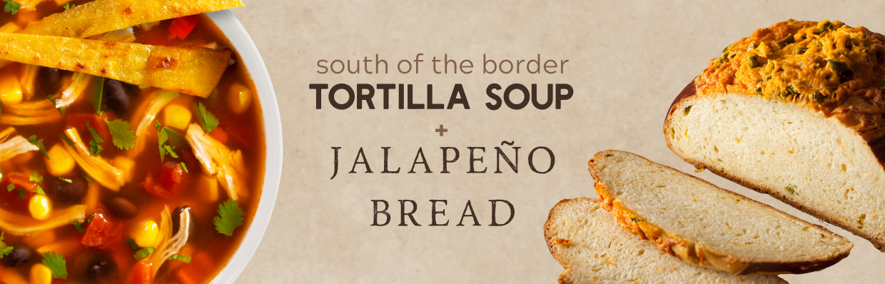 Packed with zesty spices and Southwest flavor, tortilla soup pairs beautifully with jalapeño bread. The bread adds just the right amount of heat while giving you something substantial to enjoy alongside each spoonful.