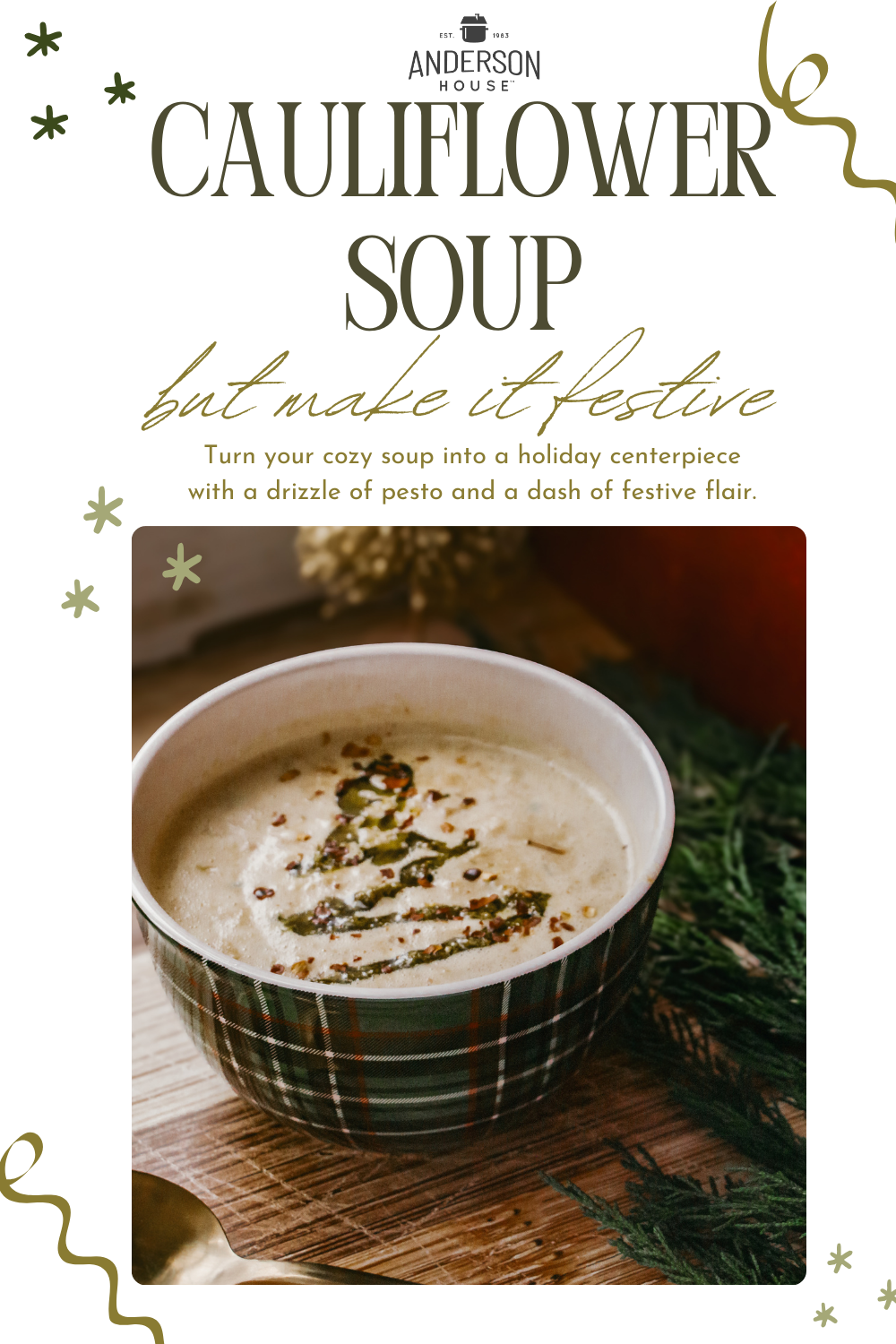 It’s officially the season for cozy bowls, twinkly lights, and experimenting in the kitchen in ways that may or may not involve yelling at a piping bag. So naturally, I made our Cali Coastline Creamy Cauliflower Soup and gave it the full Christmas treatment.